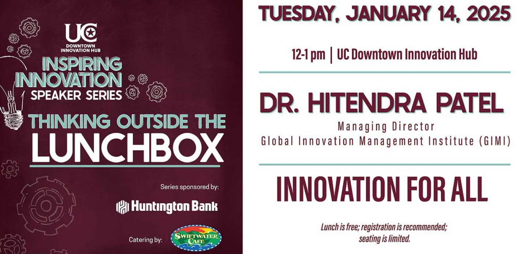 The first “Thinking Outside the Lunchbox” program will offer “Innovation for All,” presented by Dr. Hitendra Patel, Managing Director of the Global Innovation Management Institute (GIMI).